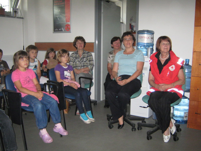 Potrebne evidence prejemnikov pomoči pa vodimo v pisarnah, ki so lepo urejene in opremljene za dejavnost tudi drugih programov. Tako je eden od teh prostorov namenjen za predavanje, usposabljanje in izpeljave tečajev iz PRVE POMOČI, kjer lahko sprejmemo do 20 slušateljev.